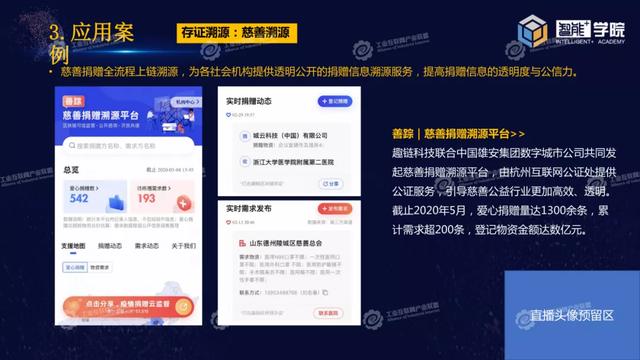 由中國信息通信研究院聯合工業和信息化部人才交流中心、中國互聯網協會、工業互聯網產業聯盟、5G應用產業方陣主辦的“同呼吸、共命運,萬眾一心,戰疫情”公益活動之“智能+學院”直播,截至5月13日已成功舉辦了28場,在當晚舉辦的“區塊鏈產業技術與應用”專題中,直播觀看人次數達到209.37萬。