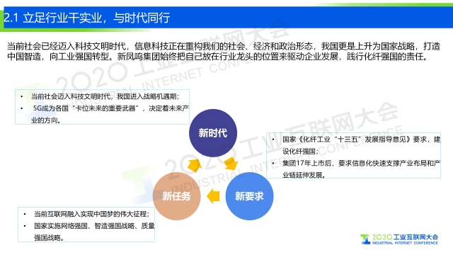 在2020工業互聯網大會工業互聯網“5G與工業互聯網融合發展”主論壇上,新鳳鳴集團首席信息官王會成發表題為《新鳳鳴集團5G創新應用實踐》的演講,分享新鳳鳴在5G應用的主要成效。