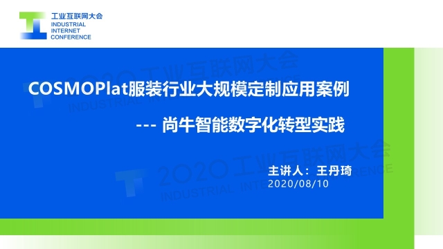 8月30日下午,在2020工業(yè)互聯(lián)網(wǎng)大會“工業(yè)互聯(lián)網(wǎng)成果發(fā)布”主題論壇上,山東海思堡服裝服飾集團股份有限公司總裁王丹琦以《COSMOPlat服裝行業(yè)大規(guī)模定制應(yīng)用案例》為題演講,分享了尚牛智能的個性化定制能力和數(shù)字化轉(zhuǎn)型路徑。
