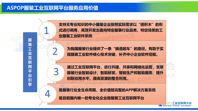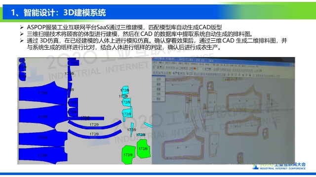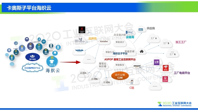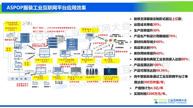 點擊下方鏈接,查看演講實錄: 專家說 “海思堡是COSMOPlat賦能紡織服裝行業(yè)的一個鮮活例子,消費者足不出戶就可以實現(xiàn)在線試衣,量身定制,企業(yè)則通過完整的工業(yè)互聯(lián)網(wǎng)平臺系統(tǒng)架構(gòu),實現(xiàn)業(yè)務(wù)流程的標準化和數(shù)據(jù)化驅(qū)動;全品類大規(guī)模定制的全流程數(shù)據(jù)化和數(shù)據(jù)實時化,使企業(yè)的運營成本降低30%,生產(chǎn)效率提高30%,產(chǎn)品生產(chǎn)和設(shè)計周期縮短70%,原料庫存減少60%,成品庫存幾乎為零。相信在不久的將來,我們會看到COSMOPlat賦能更多的紡織服裝企業(yè)。” 以下是演講PPT 敬請閱讀