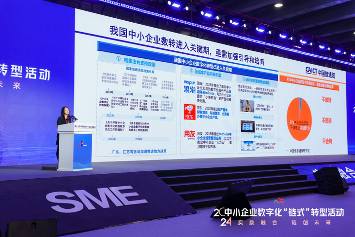 11月15日,2024年中小企業數字化“鏈式”轉型活動在廣州成功舉辦。中國信息通信研究院工業互聯網與物聯網研究所副所長李海花受邀出席活動并發布“工業互聯網數字化轉型成熟度體系—中小企業鏈式診斷服務方案”。