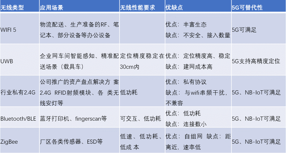 5G作為無線網絡技術的一種,在工業生產中可替代原有七國八制的多種工業無線網絡技術。5G對其他工業無線網絡技術可替代性分析如表1所示。