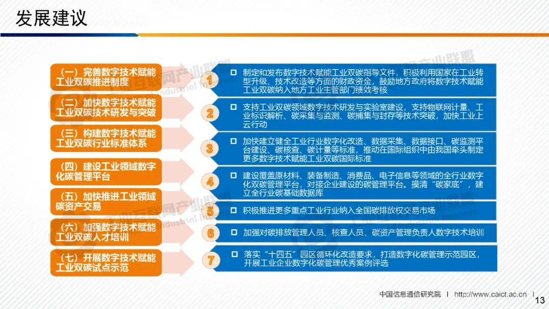 本期為您帶來由中國信息通信研究院產業與規劃研究所副總工賈敬宇分享的《數字技術賦能工業碳達峰碳中和概述》。數字技術在工業節能降碳方面正發揮著不可或缺的重要作用:一是促進工業生產綠色化,為工業領域生產流通過程中的節能改造、節約用料、供需精準對接等提供有力支撐;二是賦能工業領域的碳管理,服務工業領域碳排放數據的精準采集監測、碳數據的核查分析、碳移除等;三是助力工業碳交易碳金融發展,支撐碳資產、碳交易數據服務、算力和存儲、碳價預測等。同時,各類數字技術相互融合、共同發力,在賦能工業節能降碳方面發揮綜合效應,實現倍增效果。