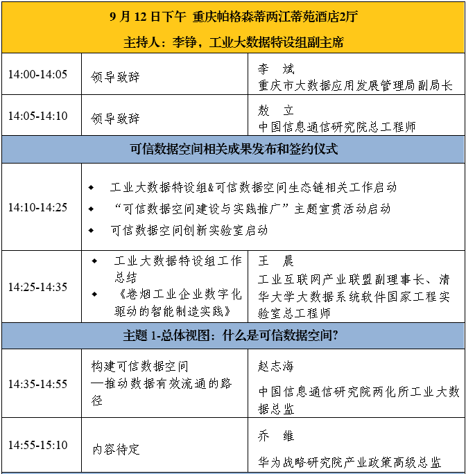 2023年9月12日下午,在重慶市舉辦的工業(yè)互聯(lián)網(wǎng)產(chǎn)業(yè)聯(lián)盟第二十二次工作組全會(huì)期間,由可信工業(yè)數(shù)據(jù)空間生態(tài)鏈與工業(yè)大數(shù)據(jù)特設(shè)組、產(chǎn)業(yè)組、需求組聯(lián)席舉辦的工業(yè)大數(shù)據(jù)特設(shè)組、產(chǎn)業(yè)組和需求組聯(lián)席會(huì)議暨可信數(shù)據(jù)空間創(chuàng)新發(fā)展論壇即將召開。