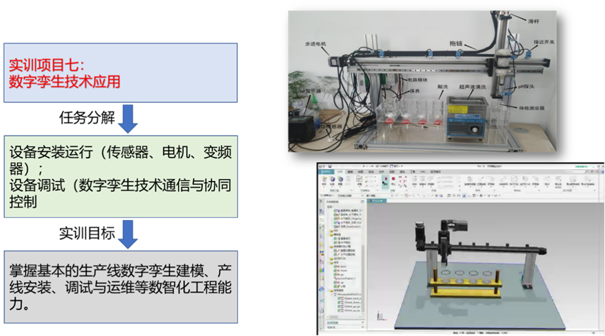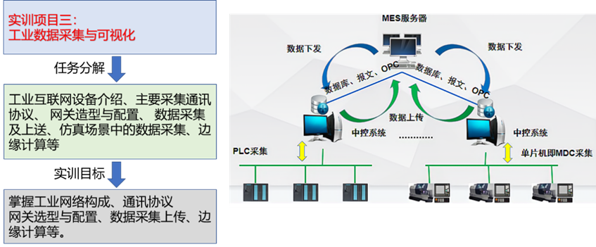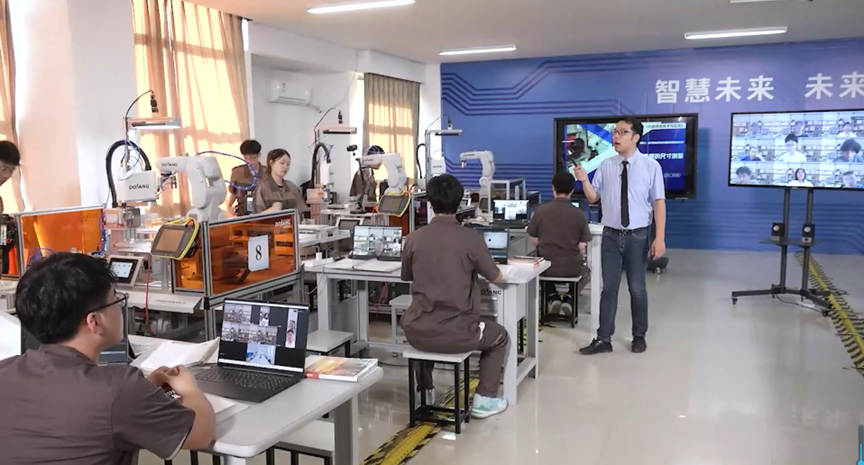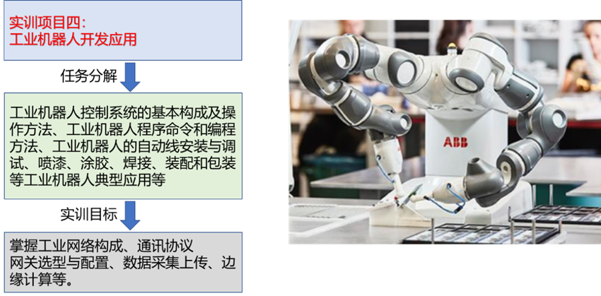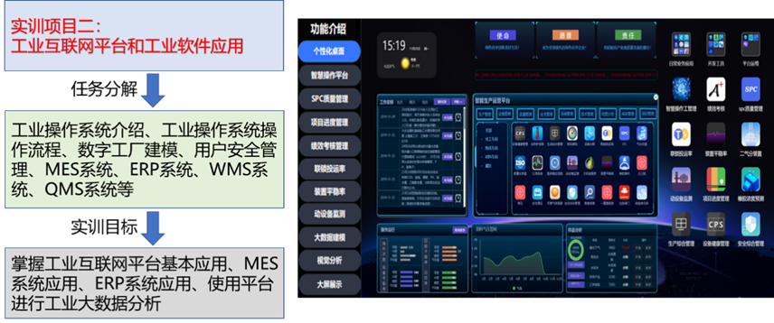 實訓基地開展了眾多綜合實訓項目:智能產(chǎn)線安裝、調(diào)試和運維、工業(yè)互聯(lián)網(wǎng)平臺和工業(yè)軟件應用、工業(yè)數(shù)據(jù)采集與可視化、工業(yè)機器人應用、工業(yè)APP開發(fā)與應用、視覺檢測系統(tǒng)應用、智能產(chǎn)線數(shù)字孿生應用等。