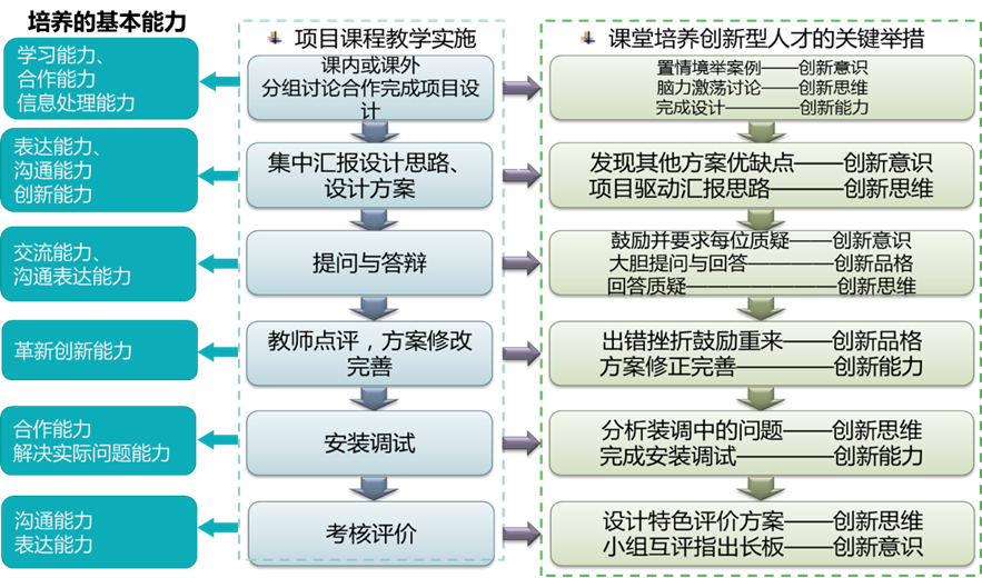 針對工業(yè)互聯(lián)網(wǎng)專業(yè)群崗位工作任務,開發(fā)教學項目和學期工程項目,創(chuàng)新開展“一周一項目”“一學期一工程”的項目化教學模式,實現(xiàn)專業(yè)能力(硬能力)和職業(yè)能力(即軟能力,主要包含自主學習、交流合作、發(fā)現(xiàn)問題、創(chuàng)新能力等)及思想政治素養(yǎng)的融合培養(yǎng),塑造高素質(zhì)技術技能人才。