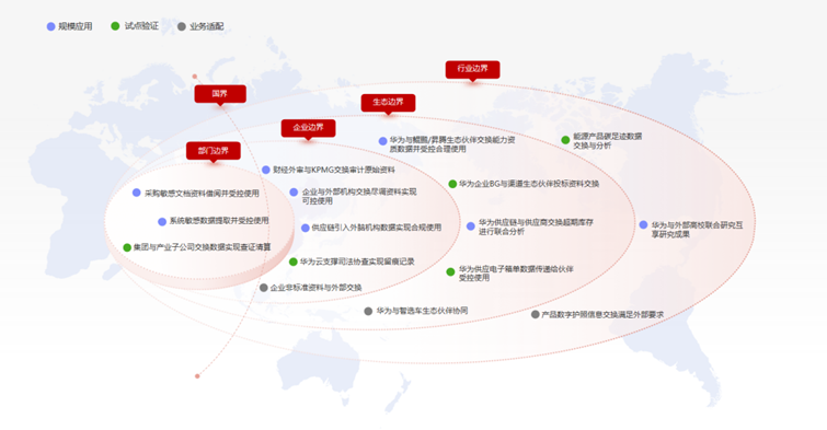 華為公司業務分布在170多個國家和地區,隨著數字化的發展,華為需要通過數據的高效聯接、跨域使用控制、安全流通支撐復雜業務的全球協同。基于此,華為希望充分融合企業內外部數據,基于清算促進數據價值的量化和分配,形成數據產生、交換、消費的良性循環,充分釋放數據價值。