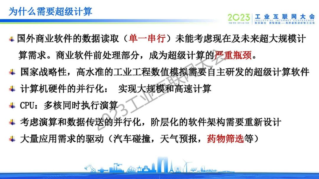 董勤喜指出,超級(jí)計(jì)算是解決國(guó)家經(jīng)濟(jì)建設(shè)、社會(huì)發(fā)展、科學(xué)進(jìn)步、國(guó)家安全和國(guó)防建設(shè)等領(lǐng)域一系列重大挑戰(zhàn)性問(wèn)題的重要手段。目前主要應(yīng)用于“高、精、尖”的前沿科學(xué)和工程研究。目前,國(guó)外商業(yè)軟件的數(shù)據(jù)讀取(單一串行)未能考慮現(xiàn)在及未來(lái)超大規(guī)模計(jì)算需求。商業(yè)軟件前處理部分,成為超級(jí)計(jì)算的嚴(yán)重瓶頸。國(guó)家戰(zhàn)略性,高水準(zhǔn)的工業(yè)工程數(shù)值模擬需要自主研發(fā)的超級(jí)計(jì)算軟件,實(shí)行大規(guī)模的高速計(jì)算。