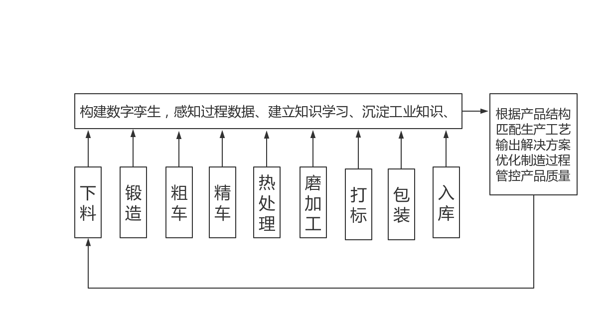 2、建立知識學習層(對應AII數字模型層),通過構建數字孿生的生產過程場景數據鏈,進行制造過程知識學習,預測分析、大數據積累,管控產品質量。