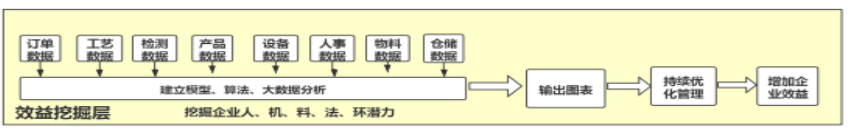3、建立大數據挖掘層(對應AII決策優化層),通過對企業生產管理過程中,人、機、料、法、環、測各種歷史的數字孿生數據鏈的學習與記憶,進行大數據挖掘,將這些歷史數據與生產過程中感知的實時數據進行分析,輸出優化的生產計劃和資源配置方案,并通過企業各級可視化系統將這些實時的解決方案傳遞到各相應的科室、車間、工段、倉庫,實時調整企業資源配置和產品質量控制,從而構成大數據的閉環優化,提升企業的產品質量和經濟效益。