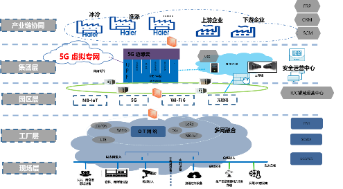 圖:多網(wǎng)融合的現(xiàn)場→工廠→園區(qū)→集團→產(chǎn)業(yè)鏈5層網(wǎng)絡(luò)架構(gòu)