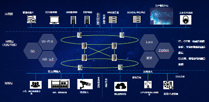 網(wǎng)絡(luò)方面,建設(shè)智慧工業(yè)園區(qū)5G行業(yè)專網(wǎng),通過網(wǎng)絡(luò)切片、邊緣計算等5G關(guān)鍵技術(shù)滿足園區(qū)網(wǎng)絡(luò)需求,并通過部署5G專網(wǎng)運營平臺實現(xiàn)網(wǎng)絡(luò)可視可管。