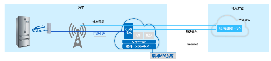 推進5G與邊緣計算、網(wǎng)絡(luò)切片的融合。將MEC、UPF從運營商的機房下沉到海爾園區(qū)內(nèi),實現(xiàn)了算法上移到MEC,滿足了數(shù)據(jù)不出廠和部分場景對于高可靠性低時延的要求。并且滿足了滿足不同業(yè)務(wù)場景對網(wǎng)絡(luò)的差異化需求及業(yè)務(wù)隔離要求。