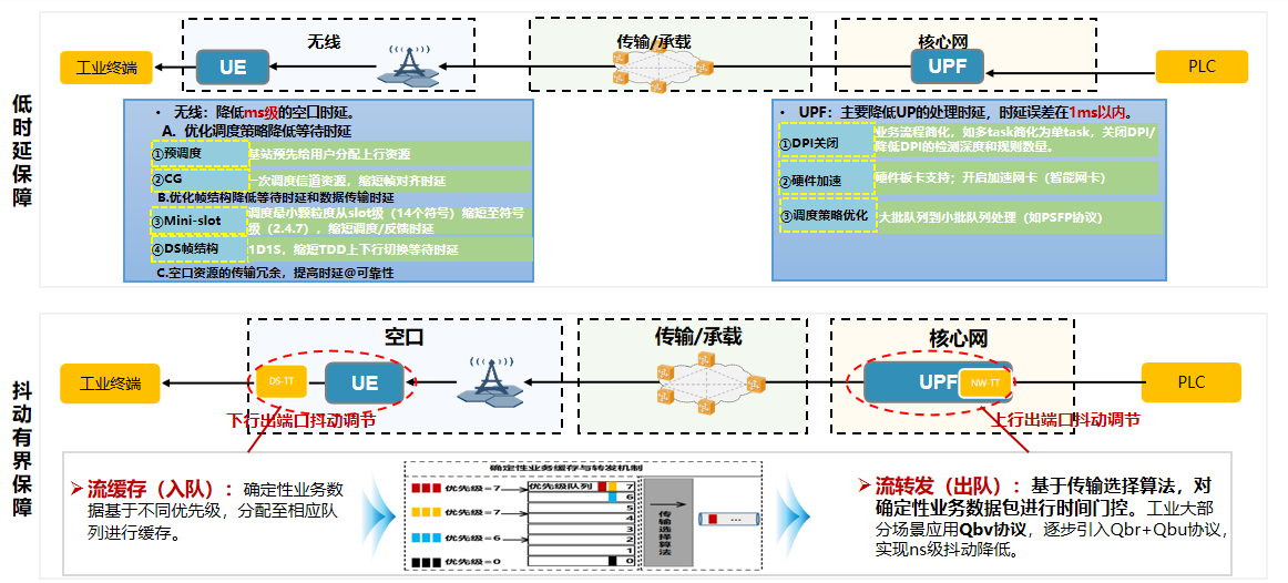 5G時延抖動有界保障,當前主要通過TSN 802.1Qbv的時間門口機制來實現(xiàn),即通過分別位于UE和UPF的DS-TT和NW-TT來實現(xiàn)時延的調(diào)節(jié)。