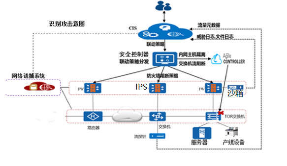 ? CIS:基于AI技術的智能安全分析器,通過檢測探針上報的流量特征和日志、終端行為等數據分析,識別未知威脅,并聯動安全控制器下發安全策略