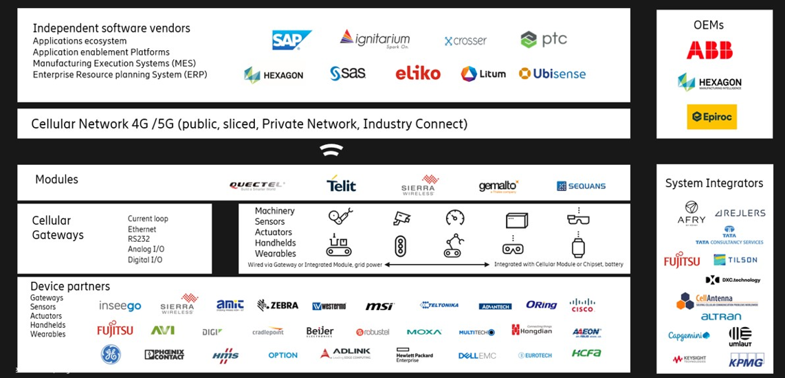 為了更好的推動行業(yè)專網(wǎng)建設(shè),愛立信也攜手眾多合作伙伴,構(gòu)建了愛立信工業(yè)4.0無線生態(tài)系統(tǒng),與運營商以及上下游的諸多合作伙伴一起,共同推動5G以及5G行業(yè)專網(wǎng)的建設(shè)與發(fā)展。生態(tài)系統(tǒng)中包括下游的終端廠商,上游的軟件和應用服務商和大型的系統(tǒng)集成商等。