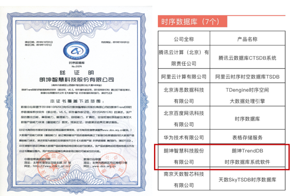 蘇暢TrendDB時(shí)序數(shù)據(jù)庫(kù)通過(guò)工信部DCA評(píng)測(cè)