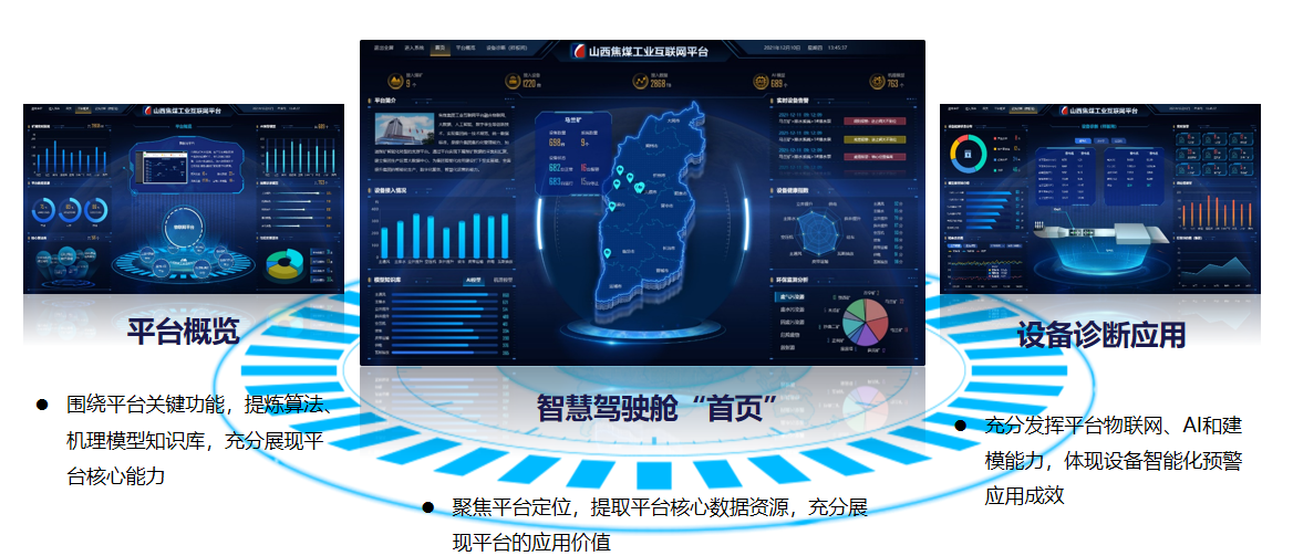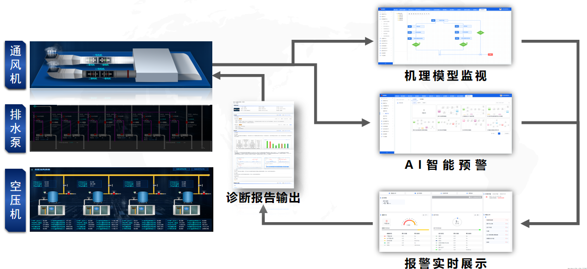 針對(duì)煤礦排水、通風(fēng)、壓風(fēng)、提升、供電、運(yùn)輸、綜采七大核心系統(tǒng)設(shè)備進(jìn)行了設(shè)備故障預(yù)警與診斷平臺(tái)的部署,打造了集設(shè)備總覽、故障診斷、專家?guī)臁?/span>知識(shí)庫(kù)、領(lǐng)導(dǎo)駕駛艙、移動(dòng)應(yīng)用于一體的設(shè)備智能化管理體系,保證設(shè)備安全、可靠、經(jīng)濟(jì)運(yùn)行,降低檢修成本。