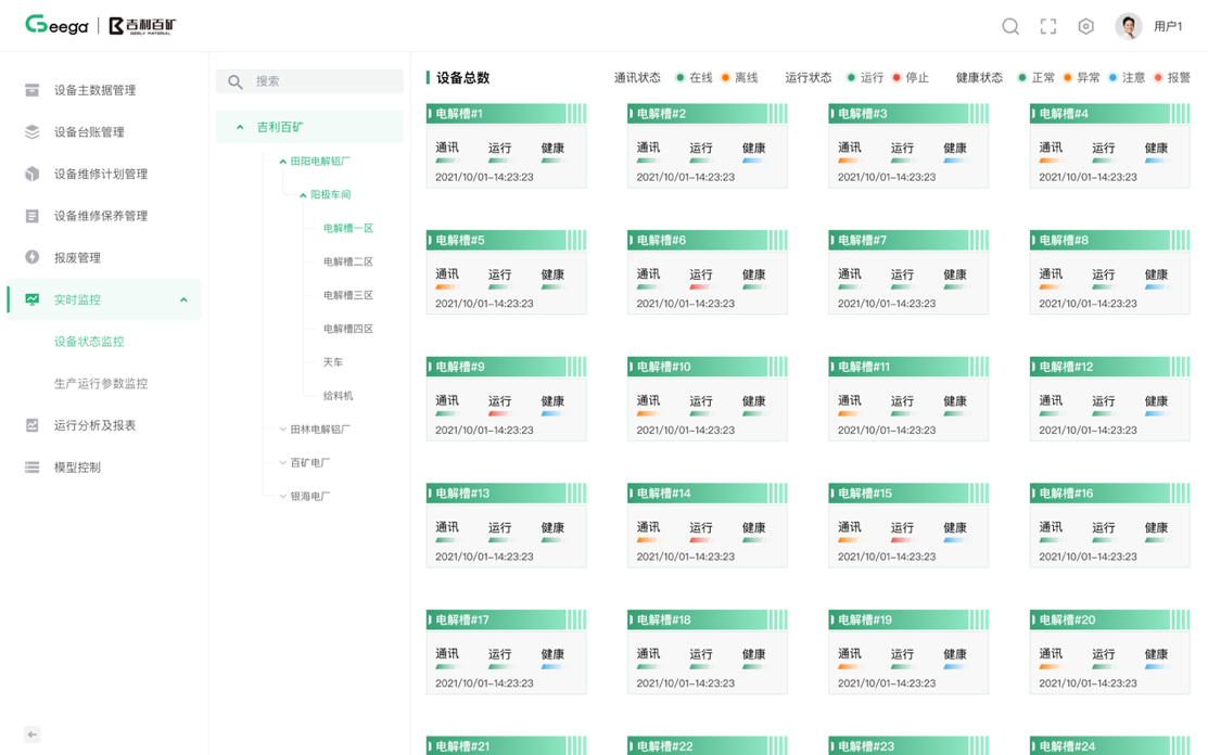 廣域銘島通過Geega(際嘉)工業互聯網平臺,利用其成熟的云計算、大數據、邊緣計算、物聯網等技術及SaaS化能力,基于百礦集團完善的鋁產業鏈應用場景,輸出系列基于鋁產業全生命周期節能降碳的數字化轉型解決方案,從綠色集約生產、能源動態配置及能耗碳排管控等三方面切入,細化工藝綠色化改進、設備上云、設備生命周期管理、能源動態監控、能源平衡優化、用電異常預警、能源利用效率提升、能耗用量分析、遠程狀態監測、污染物實時監測、超標排放預警、實時碳排放分析、碳資產核查復查、碳管控以及碳交易等15個子項,進行通用動力管理、能源管理、雙碳管理、設備管理、火電廠智能配煤管理、火電廠發電效率提升管理、電解鋁APP等7個工業APP的開發、部署以及迭代,著力打通企業生產和運營環節的能源數據鏈條,提升能源管理水平和利用效率,助力行業雙碳目標實現。