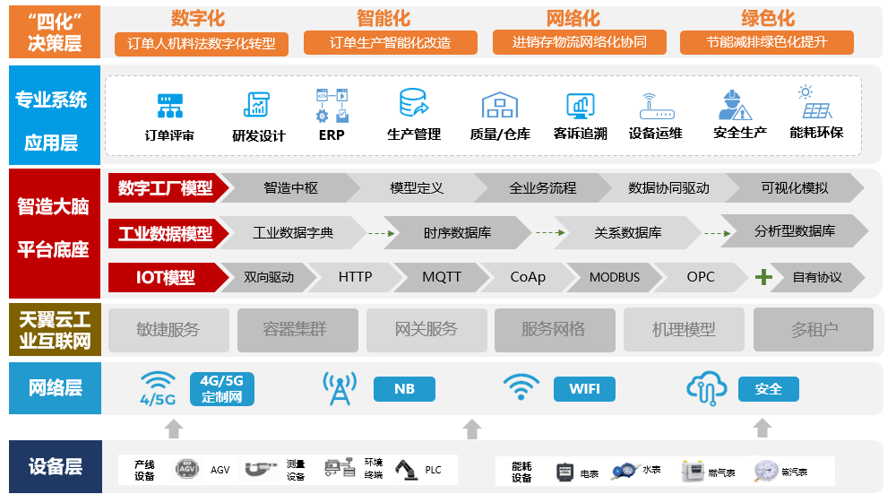 本項(xiàng)目基于天翼智造大腦為平臺(tái)底座,增加部署上線了智能大腦平臺(tái)、訂單評(píng)審、研發(fā)管理、供應(yīng)鏈、排產(chǎn)生產(chǎn)、質(zhì)量、倉(cāng)庫(kù)、客訴追溯等子系統(tǒng),兼容了原有ERP等系統(tǒng),拉通了全業(yè)務(wù)流程數(shù)據(jù),并通過(guò)天翼智造大腦以數(shù)據(jù)驅(qū)動(dòng)現(xiàn)場(chǎng)生產(chǎn)管理,幫助了企業(yè)降本增效,實(shí)現(xiàn)高度柔性制造。讓企業(yè)數(shù)字化轉(zhuǎn)型、產(chǎn)業(yè)升級(jí)有了更深的認(rèn)識(shí)與信心,將助力推動(dòng)行業(yè)、產(chǎn)業(yè)的新質(zhì)生產(chǎn)力發(fā)展。