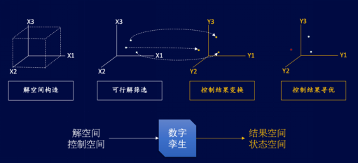 解空間構造:面對一個控制問題,所有可能的決策結果構成一個解空間;每個控制量構成解空間的一個維度;每個控制量單次最大調節量構成該維度的上下限;每個控制量的單次最小調節量構成該維度的一個刻度;