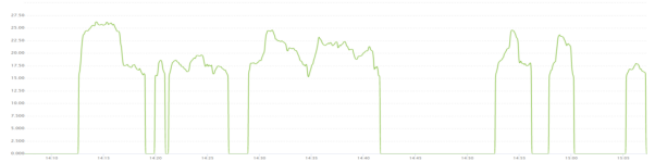 蒸汽和水的流量在熱電控制中也非常重要,但許多流量計在流量低于一定量后容易進入流量計的檢測死區,出現測量值歸零的現象,如下圖所示,當流量低于15噸時測量值直接歸零:
