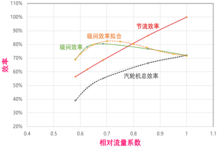 熱電廠的汽機大多采用節流方式對汽機負荷進行調整,節流方式會導致蒸汽能量的損失。而熱電由于蒸汽負荷波動大,所以汽機負荷會在較大范圍內波動。如果主蒸汽壓力不考慮汽機負荷的話,會導致低負荷段的汽機能效損失較大。如下圖展示了汽機總效率的計算原理: