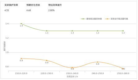 鍋爐的燃燒效率是熱電高效運行的重點,最佳的燃燒效率是鍋爐排煙熱損失和鍋爐未燃燒熱損失的實時平衡。鍋爐的排煙氧量是體現這兩個平衡的關鍵指標。鍋爐在不同工況、不同煤種、不同負荷段下,最佳的排煙氧量均不同。