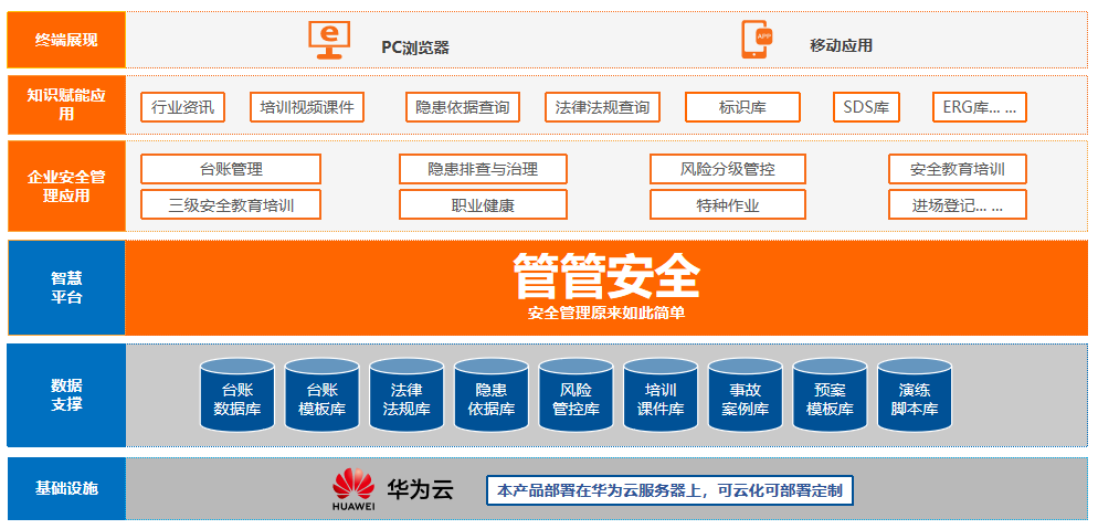 該產品為目標用戶賦能,提升其安全知識和安全管理能力;研發整合企業安全管理信息化應用和服務矩陣,幫助企業降本增效,助力企業落實主體責任,輕松管理好安全生產。
