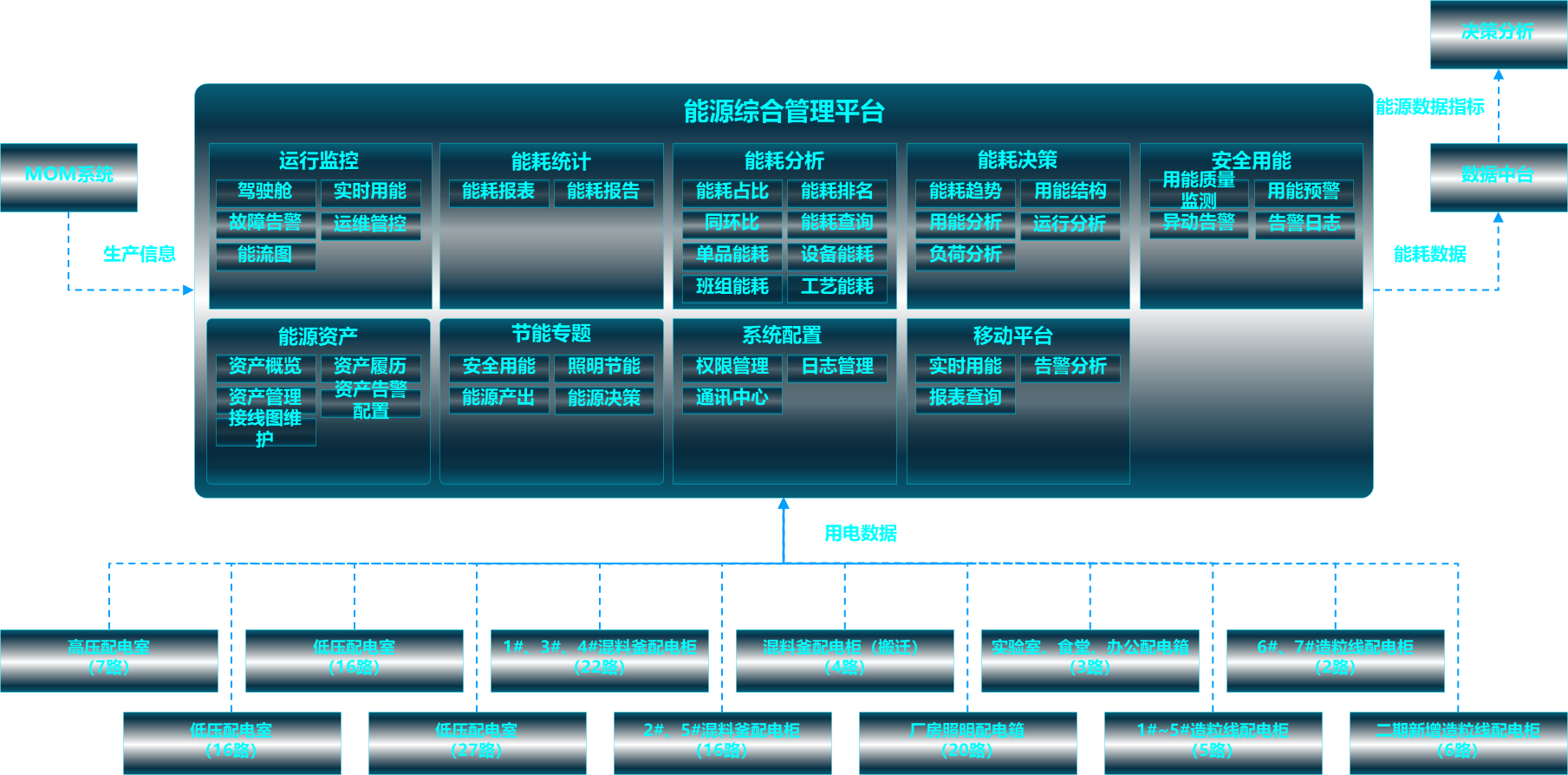 (五)要建立全面的能源綜合管理平臺,開辟綠色可持續(xù)制造發(fā)展之路,全面管控生產(chǎn)用能及輔助用能,優(yōu)化用能結(jié)構(gòu),滿足國家碳排放相關(guān)政策,平臺要有不同基地間的擴展功能,后續(xù)形成以集團總部為監(jiān)控中心各基地能源管控全覆蓋的持續(xù)用能優(yōu)化迭代系統(tǒng)。