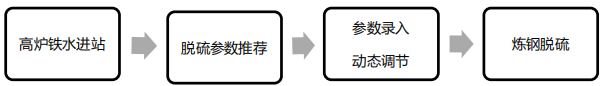 對于煉鋼脫硫工藝優化場景:鐵水進站后,脫硫優化模型將提取相關數據將進行參數優化計算。脫硫操作人員將根據推送 的推薦參數,動態調節脫硫劑的加入量,減少脫硫劑的消耗。