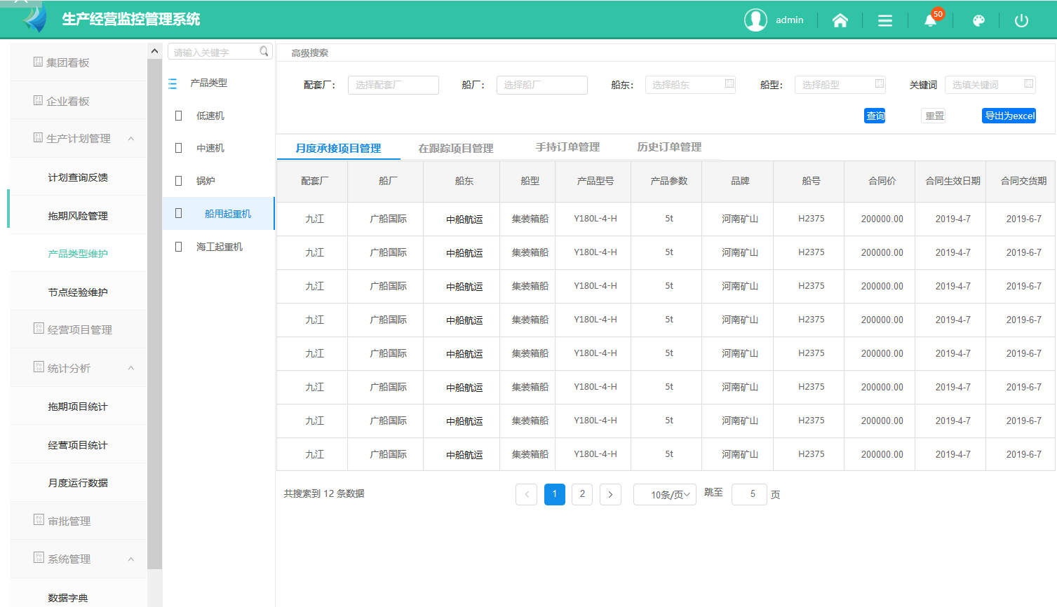 經營報表管理用于查詢每個配套企業的月度承接項目、在跟蹤項目、手持訂單、歷史訂單等情況。