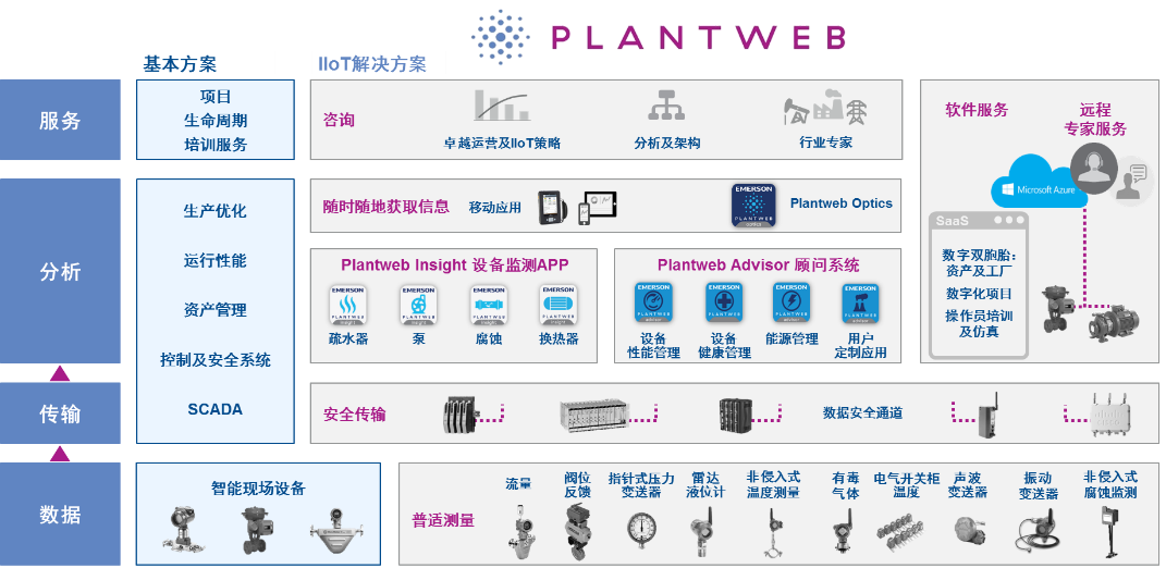 實(shí)時(shí)的數(shù)據(jù)、專家知識(shí)和移動(dòng)應(yīng)用是工業(yè)物聯(lián)網(wǎng)的基礎(chǔ),Plantweb數(shù)字生態(tài)系統(tǒng)不僅包括范圍廣泛的傳感器網(wǎng)絡(luò)和網(wǎng)絡(luò)安全工具,還包括軟件應(yīng)用、數(shù)據(jù)分析和IIoT相關(guān)的咨詢及服務(wù),旨在提高過程可靠性、能源效率、安全和整體運(yùn)營性能,幫助企業(yè)有針對(duì)性地向著可衡量的目標(biāo),逐步實(shí)施數(shù)字化轉(zhuǎn)型,實(shí)現(xiàn)卓越運(yùn)營。