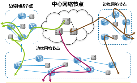 集中式DC部署呈現(xiàn)匯聚式流量模型,以主機為請求對象效率最高,流量的疏導(dǎo)和優(yōu)化在匯聚式流量模型中呈現(xiàn)一定規(guī)律性,較為容易疏導(dǎo)。