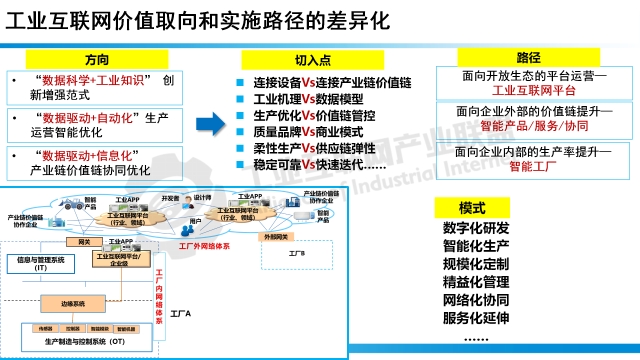 在談及“工業(yè)互聯(lián)網(wǎng)價值取向和實施路徑的差異化”時,余曉暉表示工業(yè)互聯(lián)網(wǎng)一定是數(shù)據(jù)驅(qū)動的,但又不只是數(shù)據(jù)驅(qū)動,它會和工業(yè)、行業(yè)本身結(jié)合。有三個方面,第一是“數(shù)據(jù)科學(xué)+工業(yè)知識” 創(chuàng)新增強(qiáng)范式,第二是“數(shù)據(jù)驅(qū)動+自動化”生產(chǎn)運(yùn)營智能優(yōu)化,第三是“數(shù)據(jù)驅(qū)動+信息化”產(chǎn)業(yè)鏈價值鏈協(xié)同優(yōu)化,這也是工業(yè)互聯(lián)網(wǎng)現(xiàn)在的價值所在,把傳統(tǒng)工業(yè)已有的體系做更好的結(jié)合,形成新的變革模式。