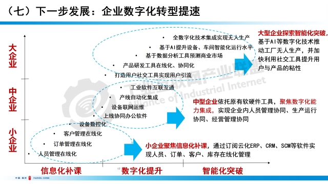 最后,余曉暉對下一步發(fā)展表示,未來企業(yè)將從信息化補(bǔ)課、數(shù)字化提升和智能化突破三個方向進(jìn)行轉(zhuǎn)型提速,最終實現(xiàn)大中小型企業(yè)共同向智能化升級方向發(fā)展。