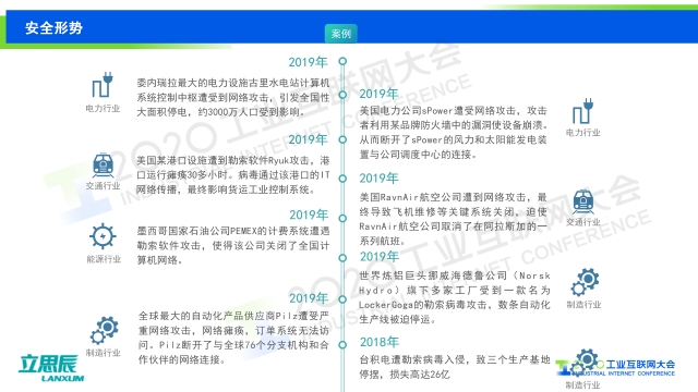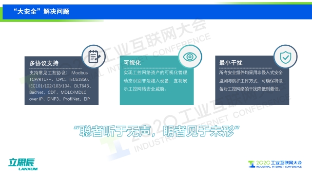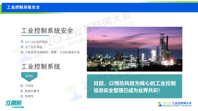 在2020工業互聯網大會“工業互聯網安全”主題論壇上,北京立思辰信息安全科技集團工業互聯網事業部技術總監郭占先發表題為《保衛工控安全,護航國計民生——工業互聯網“大安全”可知可管》的演講,介紹了立思辰在工業控制安全方面“可知”“可管”的實施路徑。