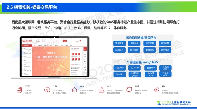 在2020工業(yè)互聯(lián)網(wǎng)大會“工業(yè)互聯(lián)網(wǎng)行業(yè)應(yīng)用”主題論壇上,成都積微物聯(lián)集團(tuán)股份有限公司產(chǎn)品總監(jiān)陳力發(fā)表題為《鋼鐵行業(yè)工業(yè)互聯(lián)網(wǎng)解決方案與應(yīng)用場景》的演講,分享了積微物聯(lián)在工業(yè)互聯(lián)網(wǎng)上的一些實踐與探索。