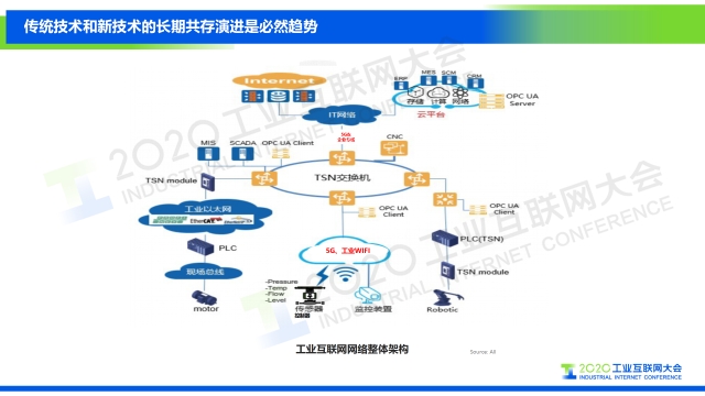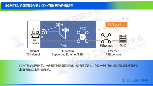 在2020工業(yè)互聯網大會“工業(yè)互聯網網絡”主題論壇上,中國移動研究院物聯網技術與應用研究所所長肖善鵬發(fā)表題為《5G+TSN 雙劍合璧——迎接工業(yè)互聯網新時代》的演講,介紹了5G+TSN在工業(yè)自動化網絡中的部署情況。