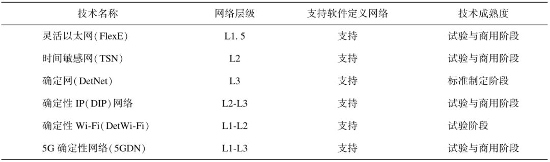 確定性網絡是一種能夠為用戶提供確定性服務質量的網絡,具備靈活切換確定性服務和非確定性服務、自主控制提供確定性服務質量等級的能力。典型的確定性網絡技術如表1所示。綜合來看,確定性網絡技術是實現5G工控系統網絡的主要路徑。5G確定性網絡(5G Deterministic Networking,5GDN)采用高精度時鐘同步、流量整形、資源預留等技術在5G網絡切片基礎上實現確定性帶寬、確定性時延和99.999 9%的連接可靠性,打造可預期、可規劃、可驗證,有確定性能力的無線網絡,提供“差異化+確定性”的業務體驗[5]。5G確定性網絡結合現場網絡、邊緣計算等技術可實現端到端確定性控制[6]