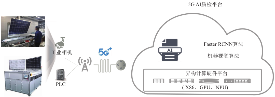 在邊緣側,采集現場照片,訓練機器視覺算法[3],利用特征提取、特征識別、缺陷分類等技術,實現質量檢測、異常檢測、儀表讀數等功能,借助5G的高速數據傳輸,提高設備的移動性,實現遠程控制。