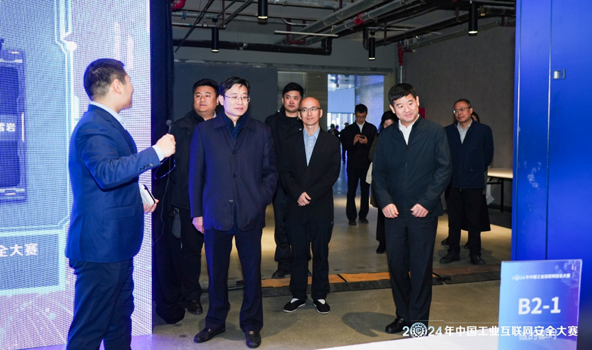 同時,閉幕式上還邀請中國信通院、北京網藤科技有限公司、北京國信網聯科技有限公司、北京衛達信息技術有限公司、北京安天網絡安全技術有限公司專家分別就工業互聯網安全政策標準解讀、企業級網絡安全防護體系建設與運營、基于SaaS的工業企業一體化網絡安全實踐、基于動態防御技術體系的工業網絡安全實踐、工業網絡環境下的勒索病毒防治等方面發表了主題演講。大賽閉幕式暨頒獎儀式舉辦前,與會領導嘉賓共同巡視參觀了競賽場景。