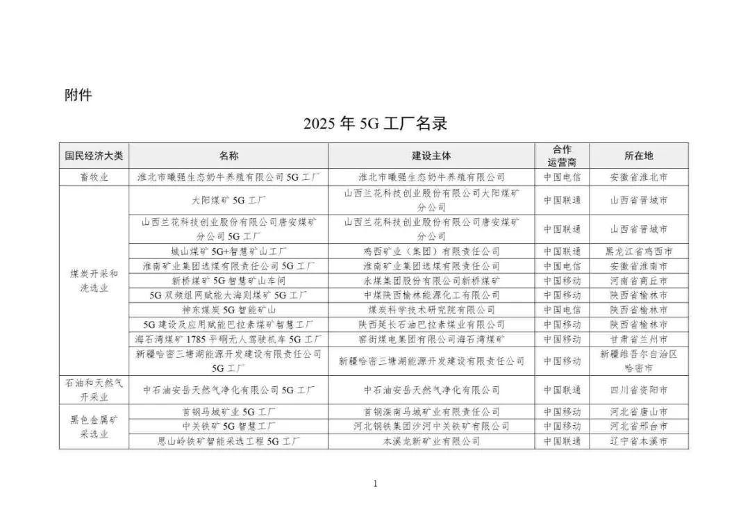 認真落實黨中央、國務院決策部署,深入推進“5G+工業互聯網”創新發展,加快高水平5G工廠建設,各地依據《5G全連接工廠建設指南》(工信廳信管〔2022〕23號)持續培育建設5G工廠,有力帶動傳統產業轉型升級。經地方推薦、專家評審等工作,形成《2025年5G工廠名錄》(見附件),共包括48個行業、560個項目,現進行公示,歡迎社會各界監督。如有異議,請在公示期內與我們聯系。