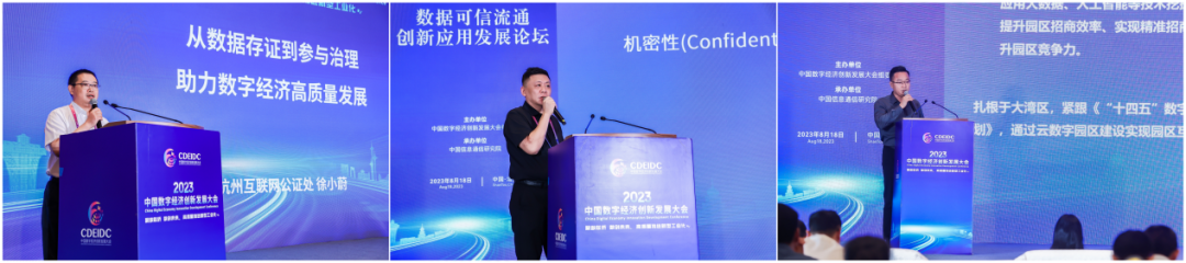 主題分享環(huán)節(jié),杭州市互聯(lián)網(wǎng)公證處主任徐小蔚以《從數(shù)據(jù)存證到參與治理,助力數(shù)字經(jīng)濟(jì)高質(zhì)量發(fā)展》為主題,分享了杭州互聯(lián)網(wǎng)公證處依托司法聯(lián)盟鏈實(shí)現(xiàn)在線取證,快速保存實(shí)時(shí)證據(jù)信息,輕松解決取證難題;數(shù)字政府粵東信創(chuàng)適配中心負(fù)責(zé)人陳端濤以《信創(chuàng)發(fā)展--基于數(shù)據(jù)可信安全的應(yīng)用》,介紹了信創(chuàng)及可信安全常用的技術(shù)、方式及閑逛應(yīng)用;集商網(wǎng)絡(luò)(上海)科技有限公司華南區(qū)總裁游文增以《可信數(shù)據(jù)存證在產(chǎn)業(yè)園區(qū)的應(yīng)用》為題,分享了產(chǎn)業(yè)園區(qū)可信數(shù)據(jù)場(chǎng)景及解決方案。
