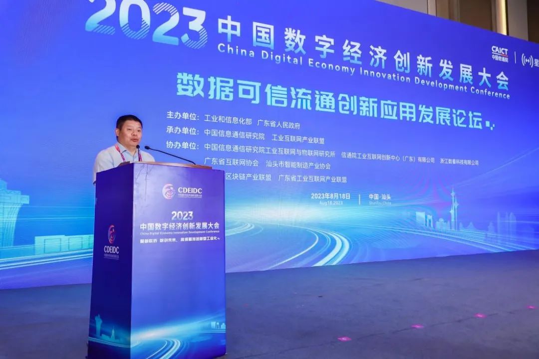 8月18日,2023中國(guó)數(shù)字經(jīng)濟(jì)創(chuàng)新發(fā)展大會(huì)——“數(shù)據(jù)可信流通創(chuàng)新應(yīng)用發(fā)展”主題論壇在廣東省汕頭市成功召開(kāi),論壇邀請(qǐng)了政、產(chǎn)、學(xué)、研、用多方共同探討數(shù)據(jù)可信流通賦能數(shù)字化轉(zhuǎn)型高質(zhì)量發(fā)展,分享“星火·鏈網(wǎng)”兩大創(chuàng)新應(yīng)用場(chǎng)景,促進(jìn)數(shù)據(jù)安全及可信構(gòu)建,推動(dòng)汕頭市數(shù)字貿(mào)易高質(zhì)量發(fā)展,最終實(shí)現(xiàn)助力汕頭市數(shù)字經(jīng)濟(jì)高質(zhì)量發(fā)展的目標(biāo)。