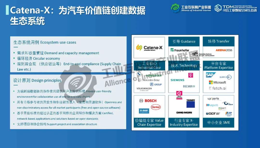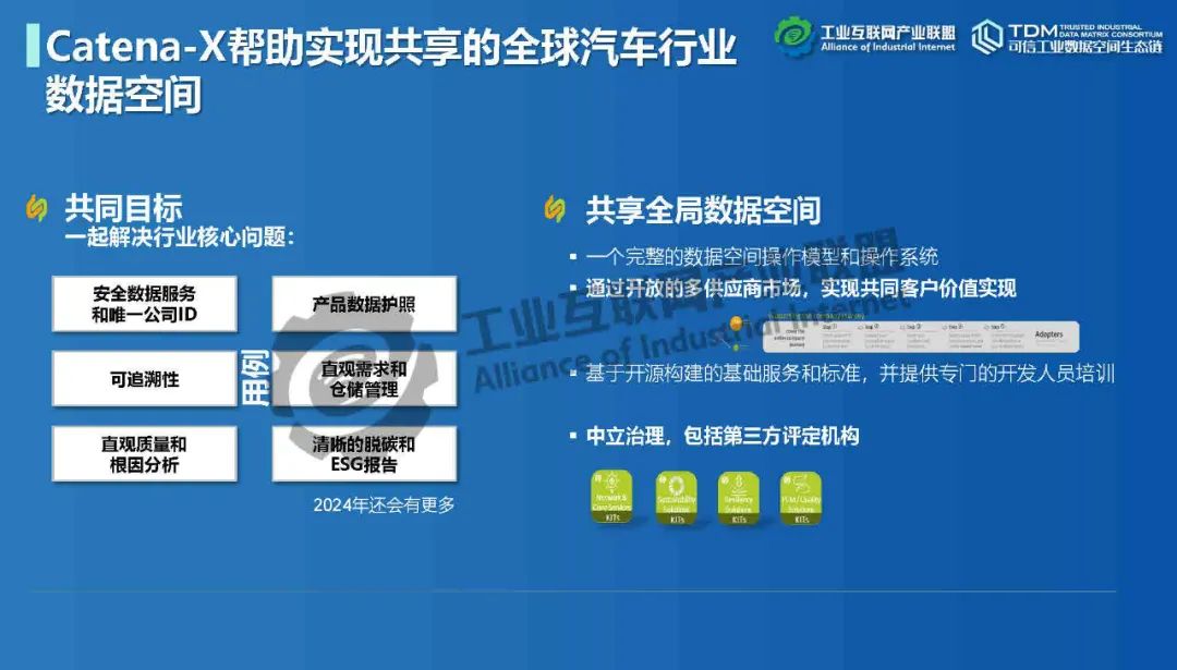 本期為您帶來由德國弗勞恩霍夫協(xié)會中國代表處代表楊雯帶來的《國際視野:Catena-X數(shù)據(jù)空間在汽車領(lǐng)域落地》。介紹了歐洲對數(shù)據(jù)空間的需求和定義,數(shù)據(jù)空間標(biāo)準(zhǔn)化、生態(tài)發(fā)展情況,以及德國弗勞恩霍夫協(xié)會與中國信息通信研究院在數(shù)據(jù)空間領(lǐng)域開展的深入合作。Catena-X旨在形成汽車行業(yè)主權(quán)可控多層次數(shù)據(jù)生態(tài),為汽車價值鏈創(chuàng)建數(shù)據(jù)生態(tài)系統(tǒng),構(gòu)建全球汽車行業(yè)全價值鏈數(shù)據(jù)生態(tài)合作的宏大愿景。