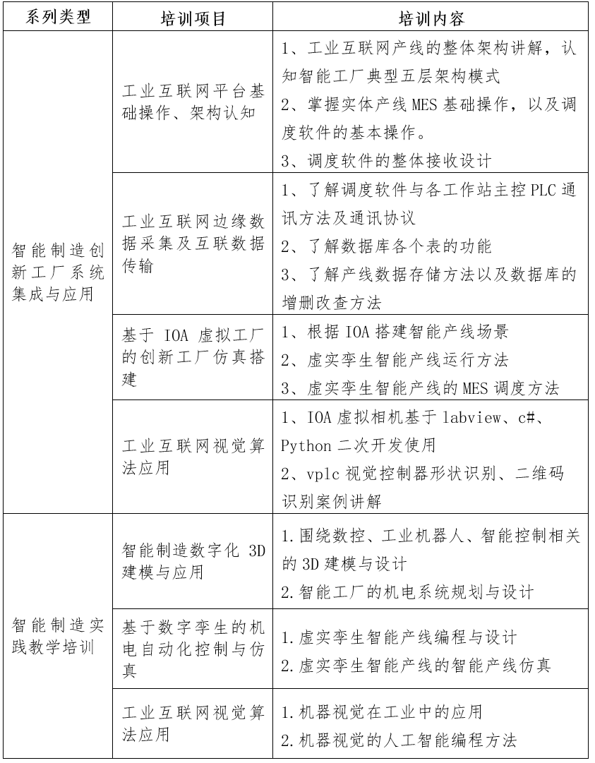 基地致力于為工業互聯網相關的教學提供較為豐富的應用技能課程資源的開發和實習實踐,培訓內容覆蓋了工業互聯網、機電自動化控制、工業機器人編程及人工智能的相關技能及產業應用。