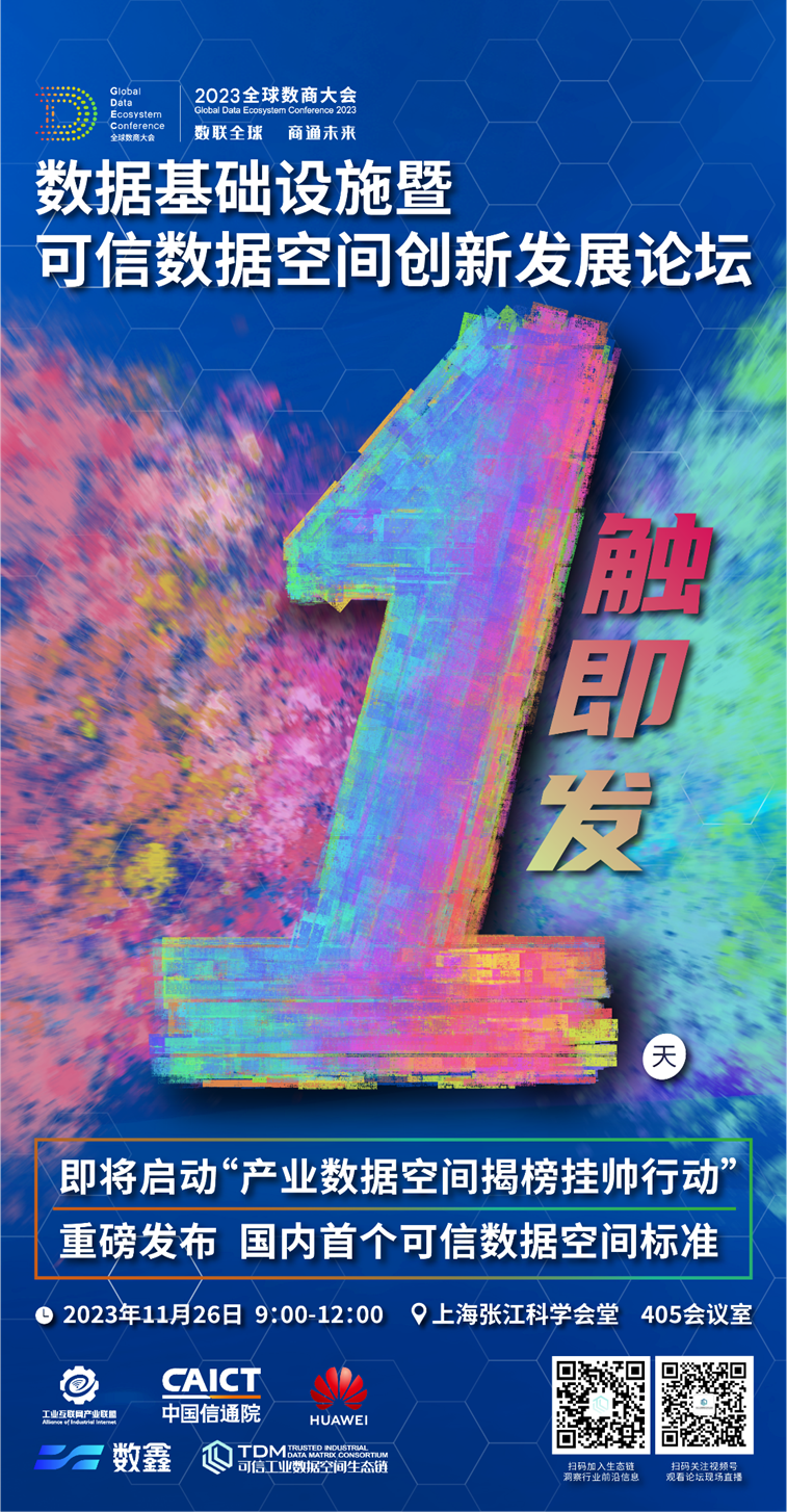 11月26日,由工業(yè)互聯(lián)網產業(yè)聯(lián)盟、可信工業(yè)數據空間生態(tài)鏈、華為云、數鑫科技、上海市工業(yè)互聯(lián)網協(xié)會等單位共同舉辦的2023全球數商大會-數據基礎設施暨可信數據空間創(chuàng)新發(fā)展論壇即將召開。論壇期間將重磅發(fā)布國內首個可信數據空間標準,“產業(yè)數據空間揭榜掛帥行動”將于論壇發(fā)布環(huán)節(jié)啟動,敬請關注!