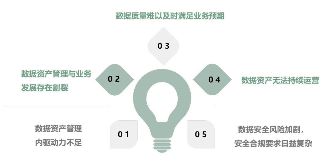 當(dāng)前,數(shù)據(jù)資產(chǎn)管理仍然面臨一系列的問題和挑戰(zhàn),涉及數(shù)據(jù)資產(chǎn)管理的理念、效率、技術(shù)、安全等方面,阻礙了組織數(shù)據(jù)資產(chǎn)能力的持續(xù)提升。