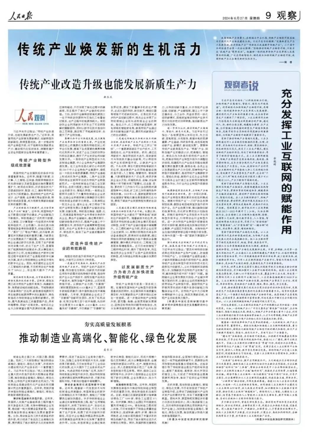 習近平總書記指出:“以科技創新為引領,加快傳統產業高端化、智能化、綠色化升級改造”。利用新技術加快傳統產業轉型升級,是順應新一輪科技革命和產業變革深入發展趨勢、建設現代化產業體系的重要方向,也為培育新質生產力提供了廣闊空間。工業互聯網作為新一代信息技術與制造業深度融合的產物,通過對人、機、物的全面互聯,構建起全要素、全產業鏈、全價值鏈全面連接的新型生產制造和服務體系,是數字經濟與實體經濟深度融合的重要路徑,為傳統產業轉型升級提供了重要動力。